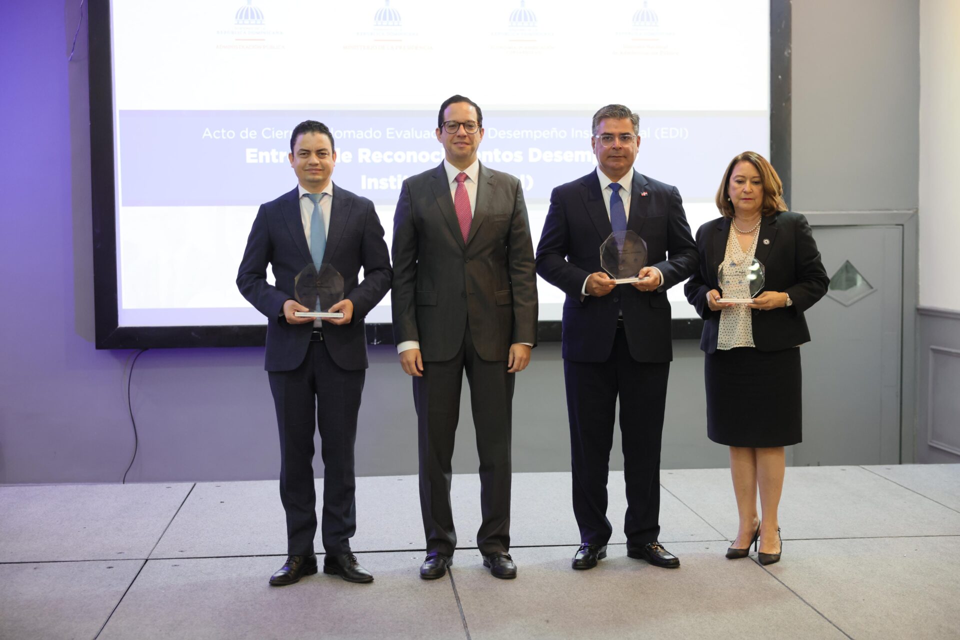 Durante el acto, el MAP reconoció al Ministerio de Hacienda, Ministerio de Relaciones Exteriores y el Gabinete de Coordinación de Política Social por su exitosa aplicación del sistema durante el año 2023.