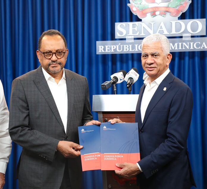 El consultor jurídico del Poder Ejecutivo, Dr. Antoliano Peralta Romero hizo personalmente la entrega de los documentos en manos del presidente del Senado, Ricardo de los Santos. Le acompañó el subconsultor jurídico del Poder Ejecutivo, Pedro Luis Montilla, quienes compartieron junto a otros senadores y personal de la prensa las premisas e ideas más relevantes de ambos proyectos.