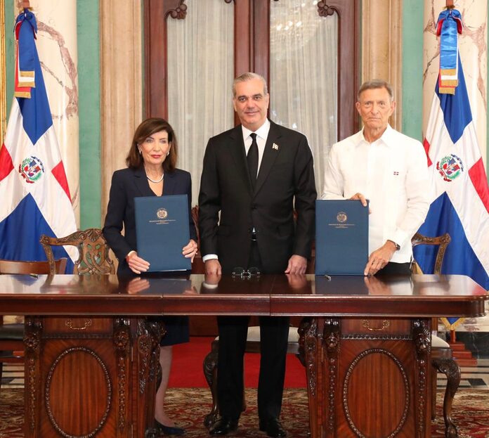 Santo Domingo.- El presidente de la República Dominicana, Luis Abinader, y la gobernadora del estado de Nueva York, Kathy Hochul, anunciaron este martes un acuerdo histórico para reafirmar y fortalecer los lazos culturales, sociales y económicos entre ambos gobiernos, mediante la firma de una Declaración de Intención que establece nuevas áreas de cooperación en preparación ante desastres, innovación agrícola y desarrollo económico, con el propósito de impulsar un crecimiento sostenible y mutuamente beneficioso.