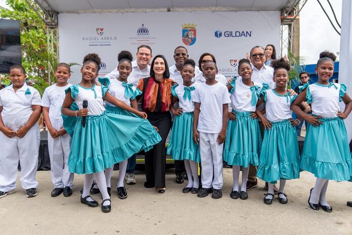 San Antonio de Guerra, provincia S.D.- La primera dama, Raquel Arbaje; el ministro de Industria, Comercio y Mipymes (MICM), Yayo Sanz Lovatón, y Arquímedes George, vicepresidente y gerente país de Gildan República Dominicana, entregaron un parque infantil nuevo y un campo de béisbol remozado en la comunidad de Bella Vista, municipio San Antonio de Guerra, en la provincia Santo Domingo.