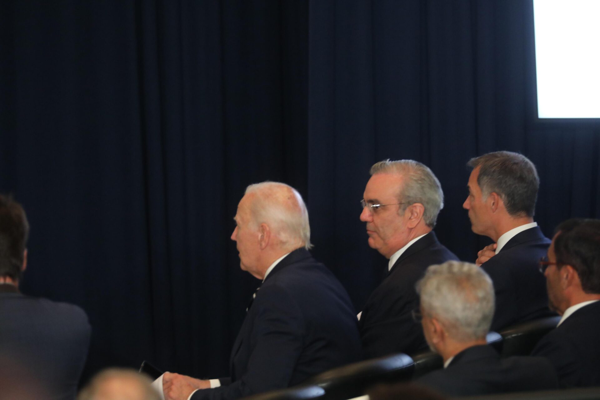El presidente Abinader y el primer ministro Belga, Alexander de Croo, estuvieron en primera fila de esta reunión, junto al presidente Biden y la primer ministro de Italia, Giorgia Meloni.